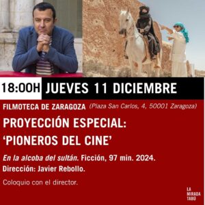 18:00 h. Proyección Especial ‘Pioneros del Cine’ Filmoteca de Zaragoza (Plaza San Carlos, 4, 50001 Zaragoza) En la alcoba del sultán (Ficción, 2024, 97 min., Javier Rebollo). Coloquio con el director. SINOPSIS: En 1901, el francés Gabriel Veyre, inventor y operador de cámara de los hermanos Lumière, acepta la cautivadora propuesta del Venerable Sultán y…