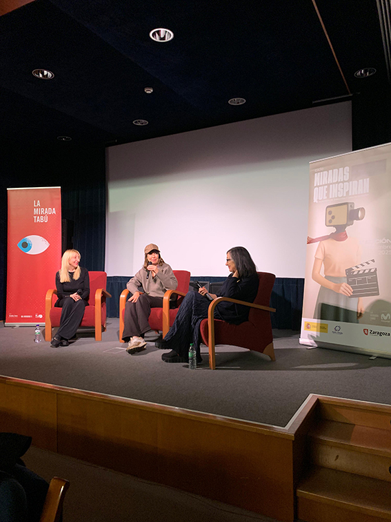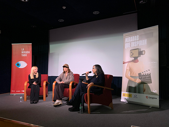 Ayer martes 11, el ciclo contó con la premiadísima productora, directora y guionista Mabel Lozano que estrenó en La Mirada Tabú (primicia en Aragón) el corto “Abril, hoy no es invierno”, cuya première tuvo lugar en el Festival de San Sebastián (septiembre 2025). También fue la primera presentación en España de su primera novela de ficción, “Ava”, basado en su propio cortometraje, que obtuvo un Goya en 2022. Una sesión al alimón con la productora, directora y guionista de animación Chelo Loureiro, que ha obtenido más de 300 premios internacionales. Su cortometraje “Yo voy conmigo”, fue Premio Tabú de Género en la edición de 2024. En esta sesión también se proyectó el corto francés de animación “Herbe Verte” (Élise Augarten, Francia, 2023).