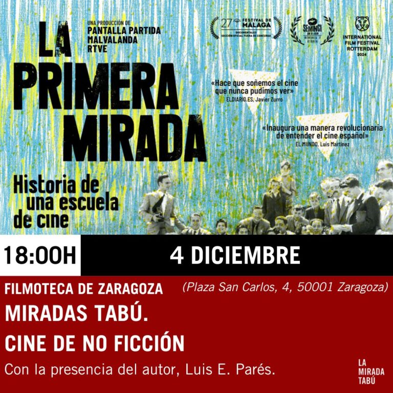 Filmoteca de Zaragoza (Plaza San Carlos, 4, Zaragoza) MIÉRCOLES 4 Diciembre 18 h. La primera mirada (Luis E. Parés).Documental, 2023, 74 min. Con la presencia de su autor Documental sobre la primera escuela de cine que hubo en España. Fundada en 1947 como Instituto de Investigaciones y Experiencias Cinematográficas (IIEC), en 1962 pasó a llamarse…